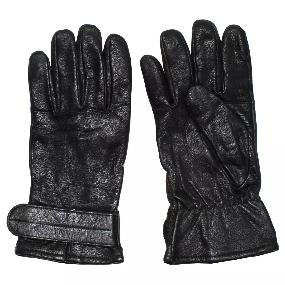 Austrian Leather Gloves with Lining, Black, Surplus. These gloves have been worn hard and will continue to serve you well in various military activities or outdoor adventures. They can easily double as urban gloves too. Features a Velcro wrist closure.