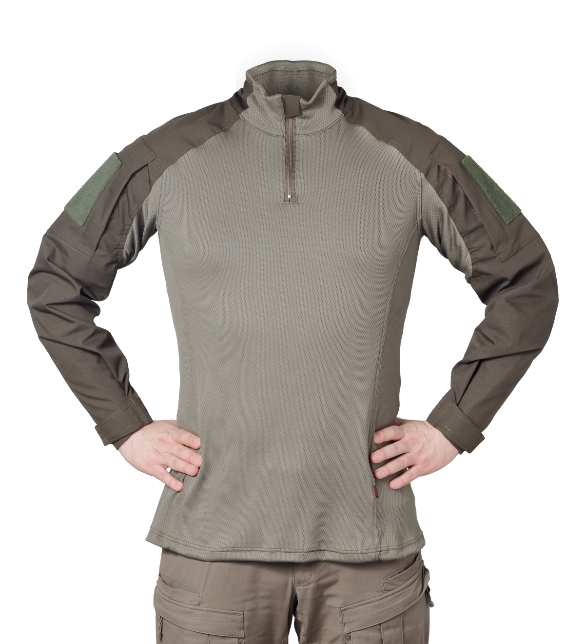 The fabric structure is identical to that used in the Defense Forces' summer undershirts, making it highly breathable and cool even in hot weather. One could say its added silver ions enhance its Mil-Spec performance. An excellent choice to wear under body armor. The collar height has been increased by 1.5 cm for better neck protection. The inner collar and trim are made of the same Coolmax-Fresh® fabric as the body. The collar and trim feel soft against the skin. A zipper flap covers the top of the zipper to prevent chafing around the neck. The cuffs feature Velcro closures that can be adjusted for comfort depending on weather conditions. Raglan sleeves complete the design.