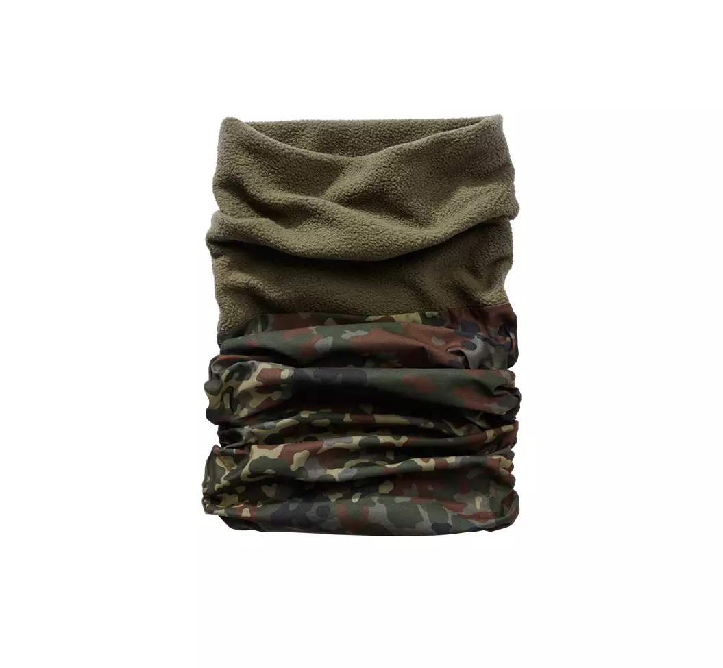 Brandit Fleece Tube Scarf, Flecktarn. This tubular scarf is versatile; it can keep your neck warm, transform into a beanie, balaclava, headband, hair tie, or anything else you can think of. The fleece lining adds additional warmth. An essential accessory every outdoor enthusiast should have.