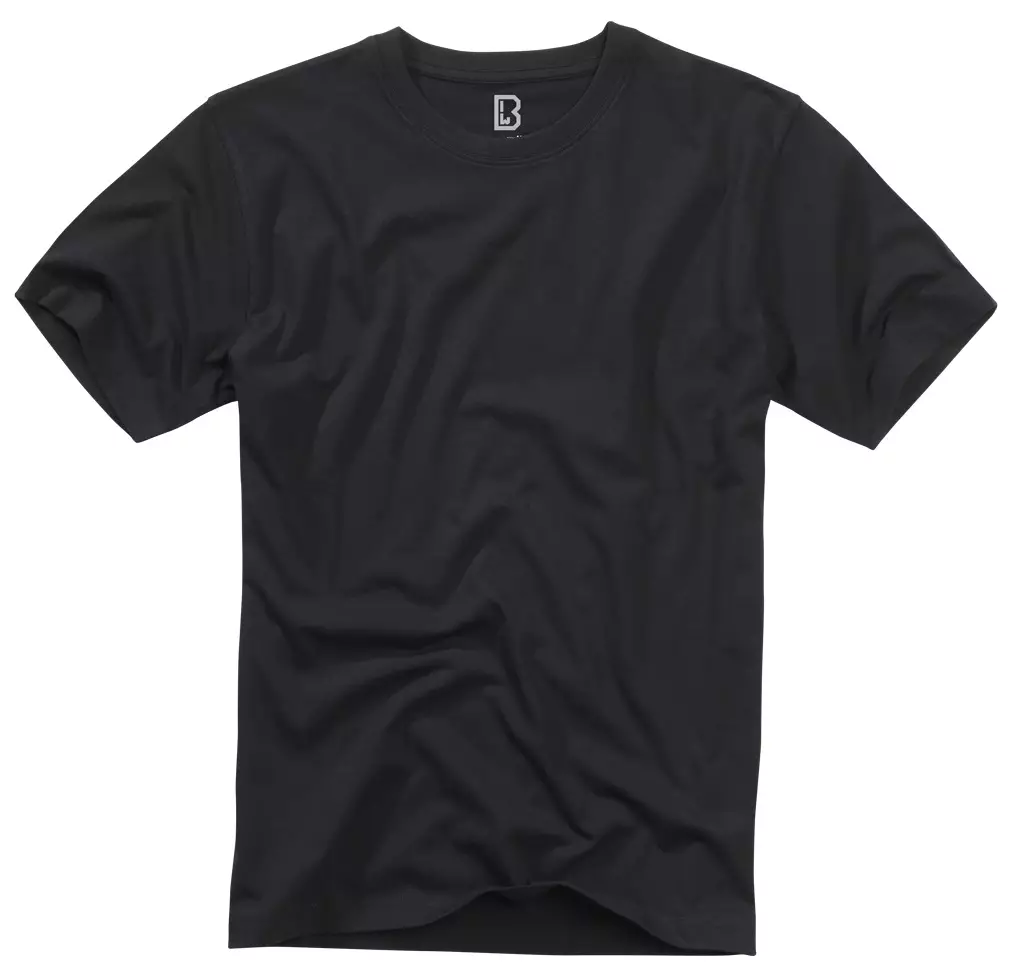 Brandit T-Shirt, Cotton, Black. Crafted from skin-friendly cotton, this O-neck T-shirt boasts a relaxed fit for comfort. It's perfect as an underlayer beneath a flannel shirt or worn alone in the summer months.