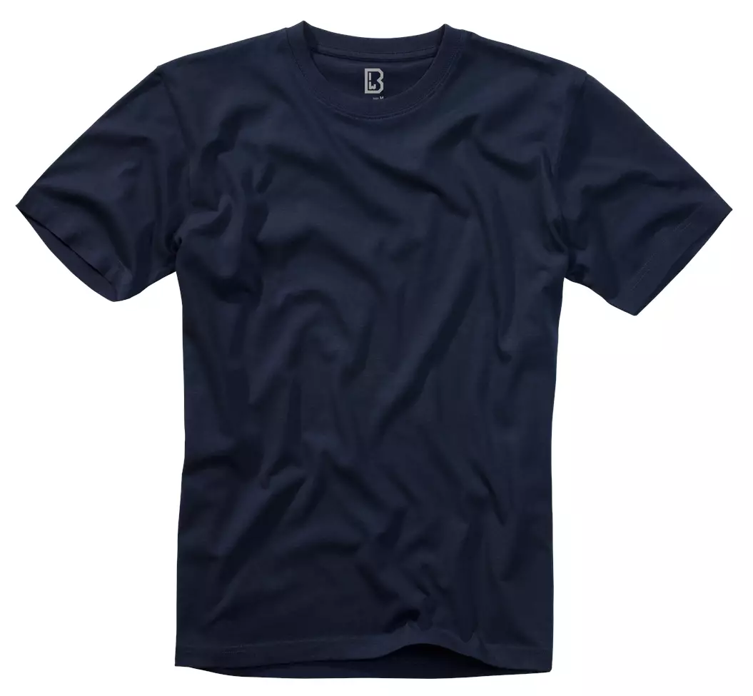 Brandit T-Shirt, Cotton, Navy Blue. This O-neck T-shirt by Brandit is crafted from skin-friendly cotton, designed for comfort and durability. It offers a relaxed fit that can easily be worn as a base layer under a flannel shirt or on its own during the summer months.