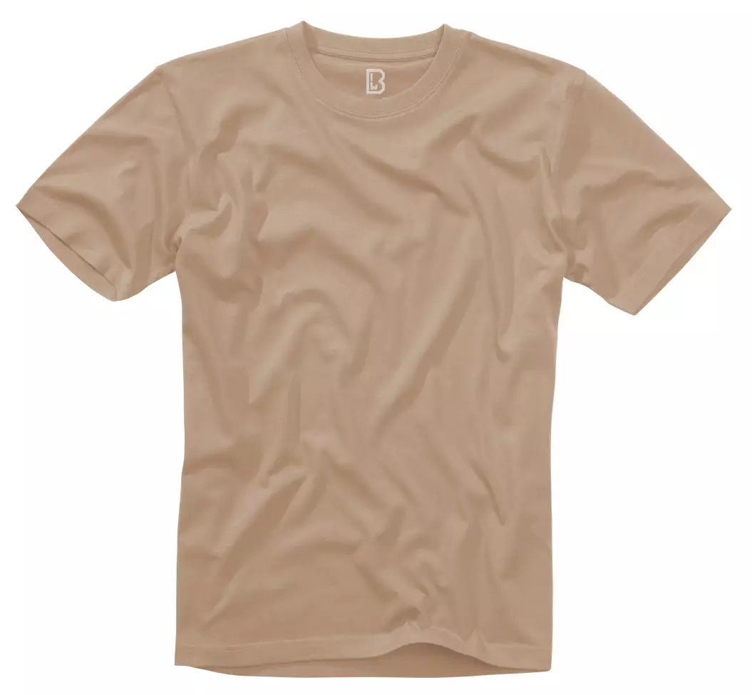 Brandit T-Shirt, cotton, light brown. Crafted from skin-friendly cotton with an O-neck design, this T-shirt offers a comfortable and adjustable fit. It works great as a base layer underneath a flannel shirt or worn solo on summer adventures.