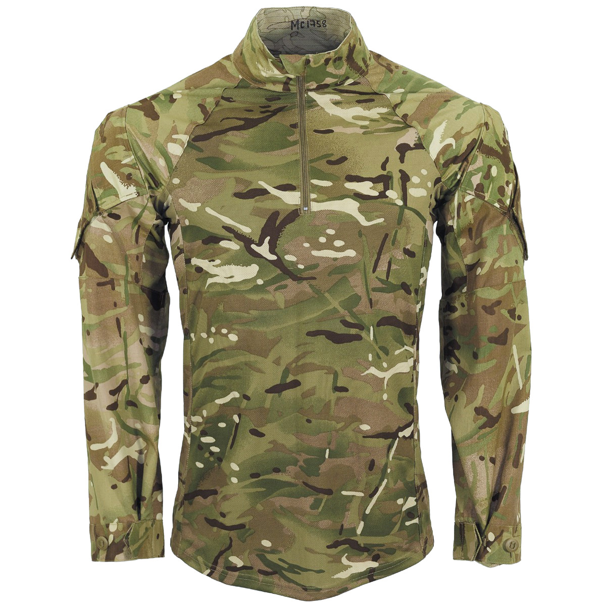 Under Body Armour Combat Shirt (UBACS) is designed for wear under a shrapnel vest. This shirt features the full pattern EP MTP camouflage. The pattern is the British MTP (Multi-Terrain Pattern) which closely resembles the US multicam. The shirt has a half-high collar, a zippered collar, and button-adjustable sleeves. It is made from a highly breathable, quick-drying technical fabric, the same as that used in British technical t-shirts. These shirts can be worn under body armor, keeping the midsection dryer and making combat more comfortable. They are also suitable for SRA, airsoft, or just casual wear.