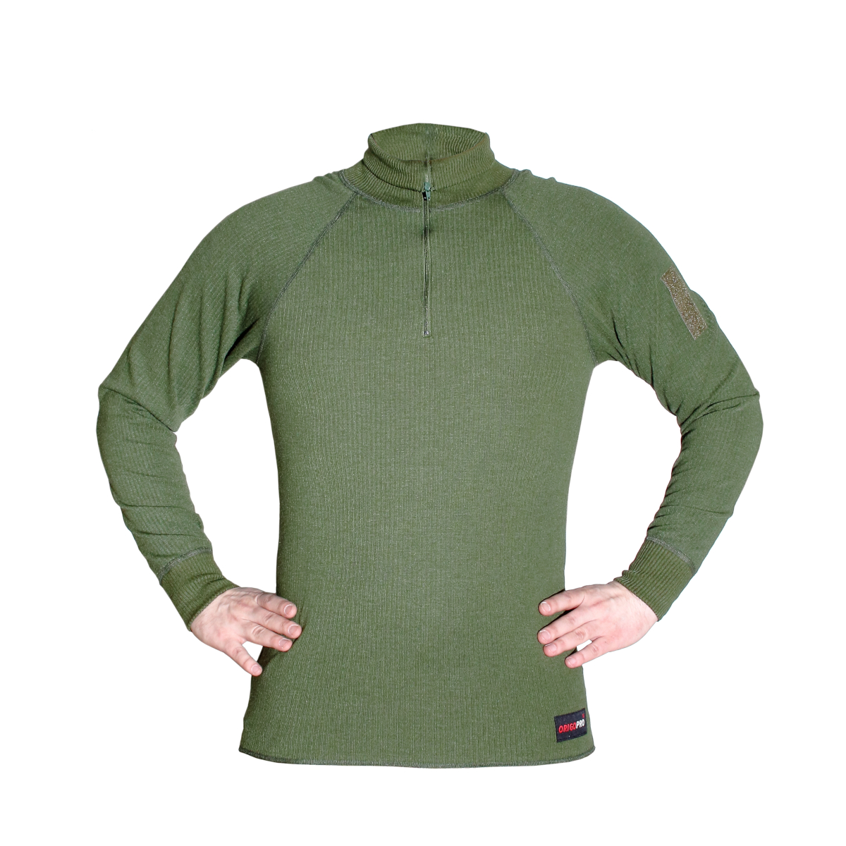Finnish Army Field Polo M91, Green. Finally available, the Finnish Defense Forces M91 model field polo. This raglan-seamed shirt has been manufactured for the military since the 1990s. It features a high 10 cm foldable collar with a spiral zipper, ribbed cuffs, a velcro patch on the left sleeve for attaching rank insignia, and a back hem that is longer to keep it tucked in while crouching in the field.
