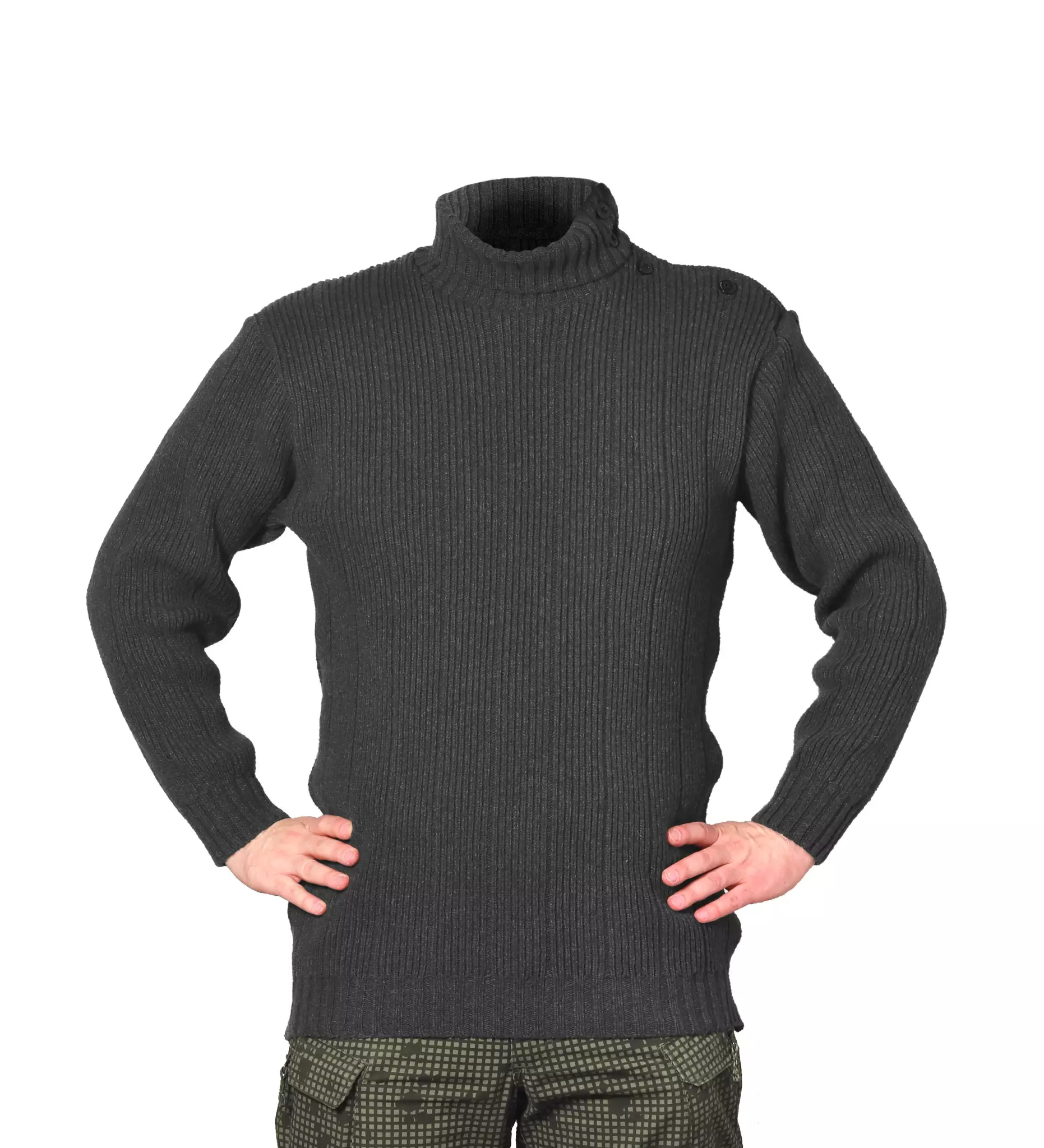 Finnish Wool Sweater with Button Neck, Dark Grey