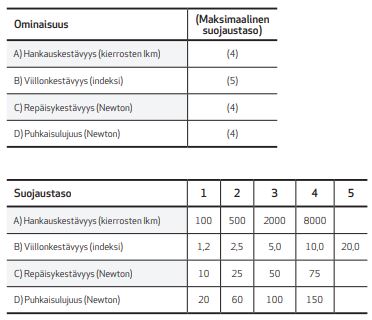are compared to a reference material, yielding an index number. The highest protection level is 5, which corresponds to an index number