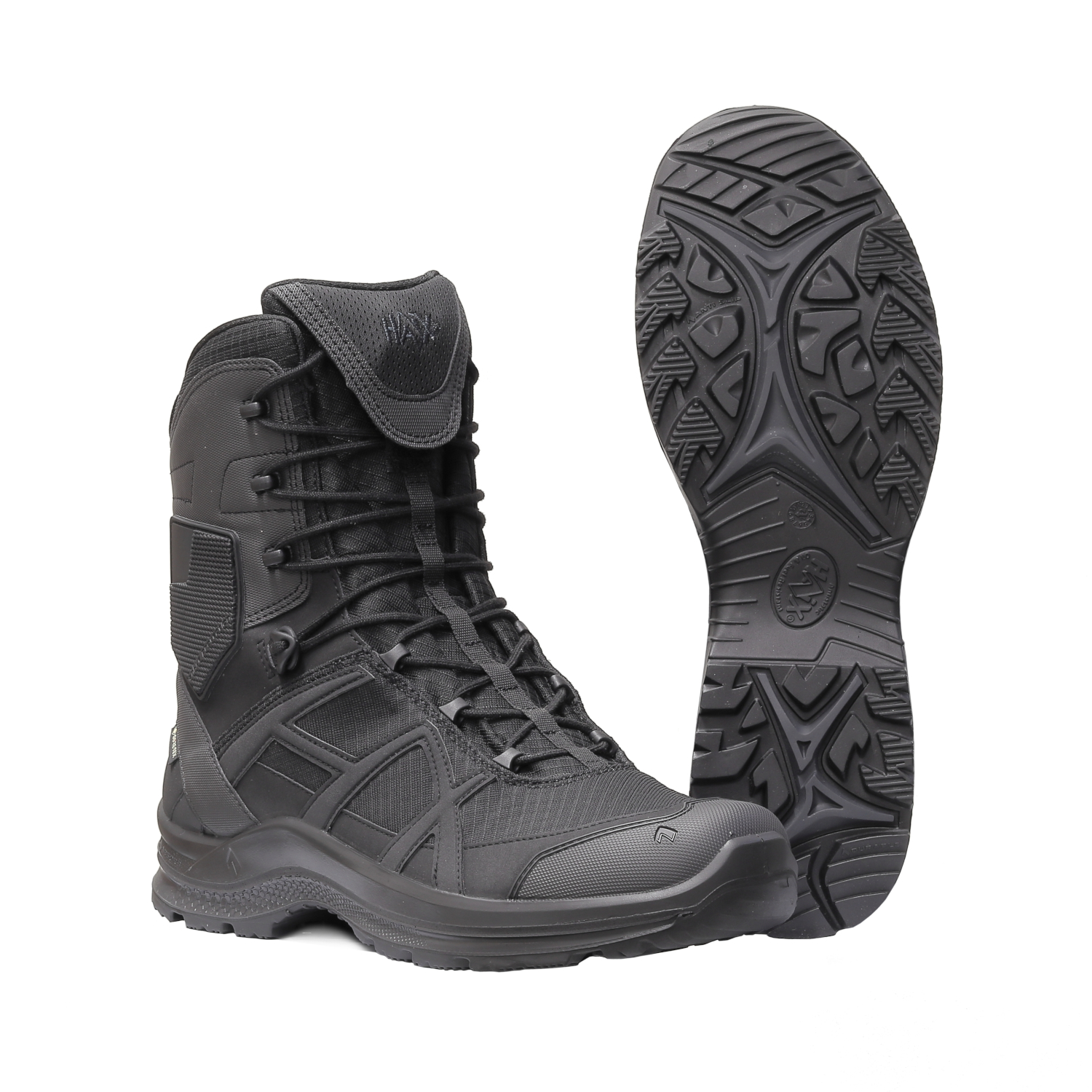 Haix Black Eagle Athletic 2.1 GTX High. The Athletic is a lightweight, sporty, and fully waterproof black high-cut boot designed for outdoor enthusiasts and professionals. This footwear combines the best features of sneakers and combat boots. The durable mix of microfiber and textile makes the upper both resilient and breathable. The fine-knit fabric keeps sand out and it is exceptionally rip-resistant.