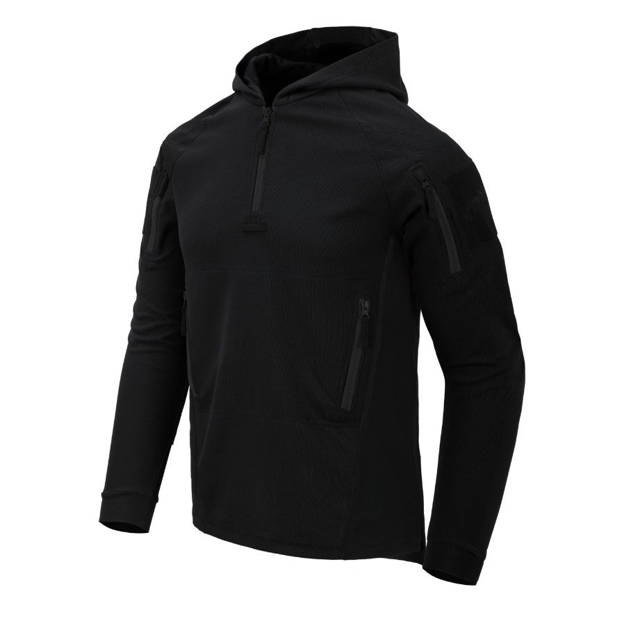 Helikon-Tex Range Hoodie, black. The Range Hoodie is the perfect solution for those weather changes when a jacket is too hot but a t-shirt is not enough. Designed specifically for use at shooting ranges, its functional materials and cut make it well-suited for various outdoor or sports activities as well as regular daily wear.