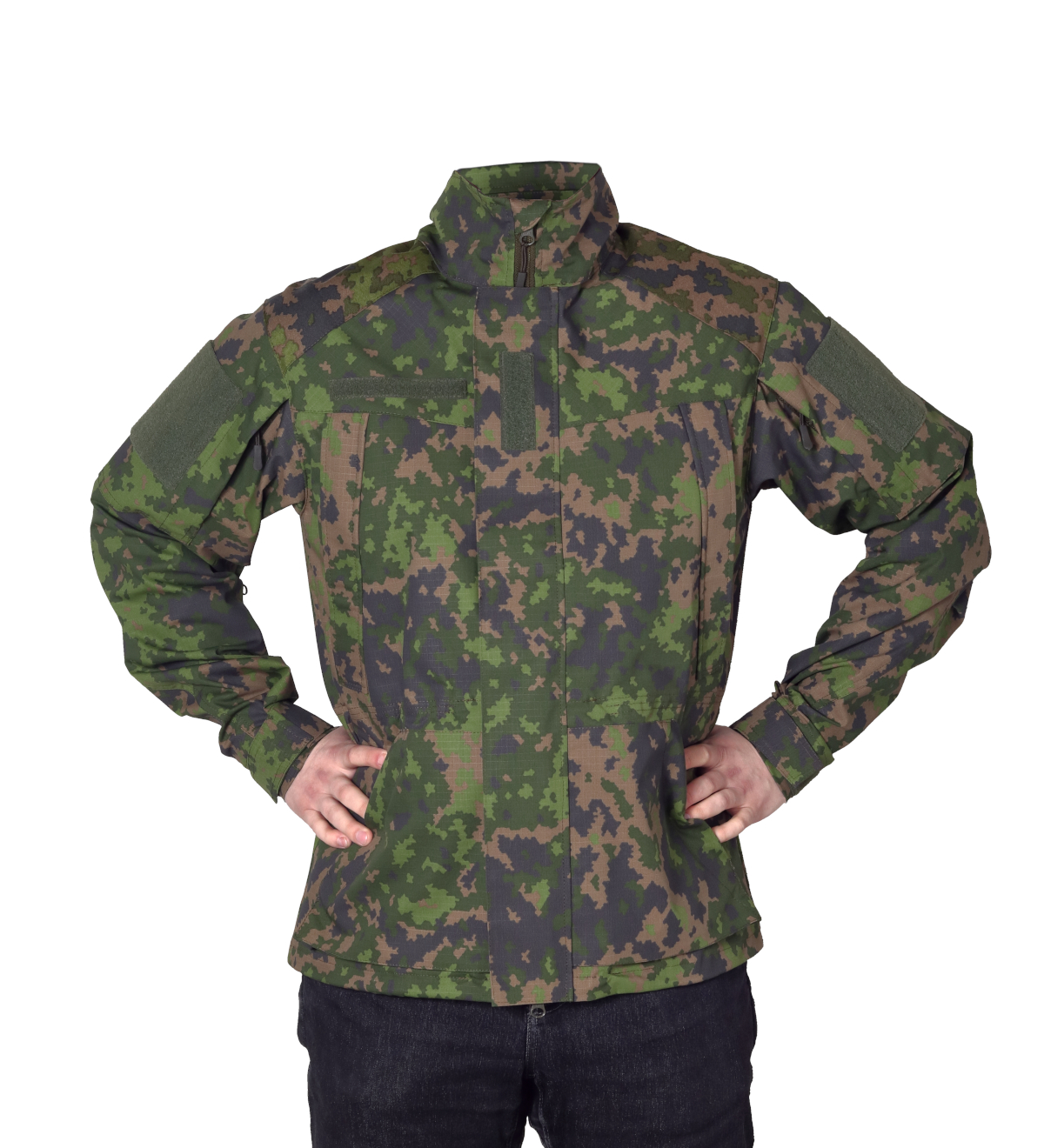 M05 Tactical® TST Field Jacket, Woodland Camouflage. The M05 Woodland Camouflage TST Field Jacket is crafted from IR-compliant stretch ripstop material. This durable fabric incorporates American LYCRA® T400® elastic fiber, ensuring long-lasting elasticity without degrading through washing or wear.