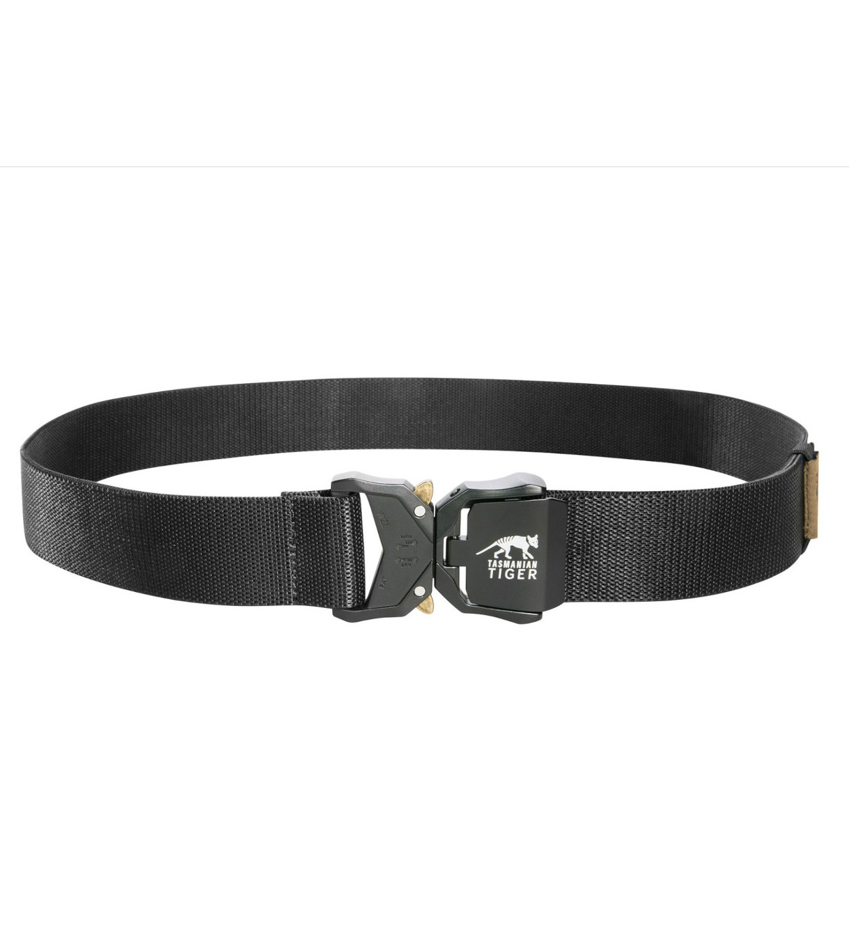 Tasmanian Tiger Stretch Belt, Elastic Belt 38 mm, Black. This belt embodies Tasmanian Tiger’s innovative approach to flexible trouser belts. It features a patented Cobra-style buckle for secure fastening, specifically designed for durability and functionality. With a maximum length of 105 cm, the belt can stretch slightly beyond that, providing adaptability for a range of user movements. The 38 mm width offers a robust support structure. Its elasticity allows the belt to comfortably adjust with the user's movements and breathing. Length adjustments are straightforward: simply open the adjustment lock on the buckle, pull the belt to your desired length, and secure it in place. Any excess can be neatly tucked away using an elastic loop. The buckle can easily be detached from the belt without tools, ensuring quick reattachment no matter where you are!