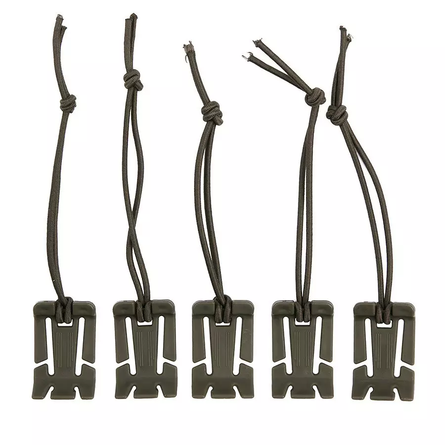 Clip for Molle webbing with elastic cord, 5 pieces per pack, green 5 pieces per pack