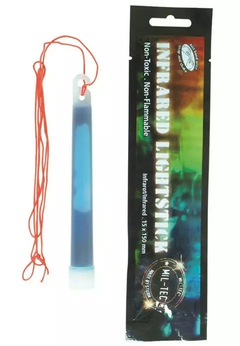 Light Stick 6-8 h, 1.5x15 CM, Infrared. A lightweight light stick that operates without electricity. The light activates by bending the stick. This light stick emits infrared light with a wavelength of 780 nm. It is invisible to the naked human eye, but with light amplifiers, you can see a bright illumination. The light stick works even underwater.