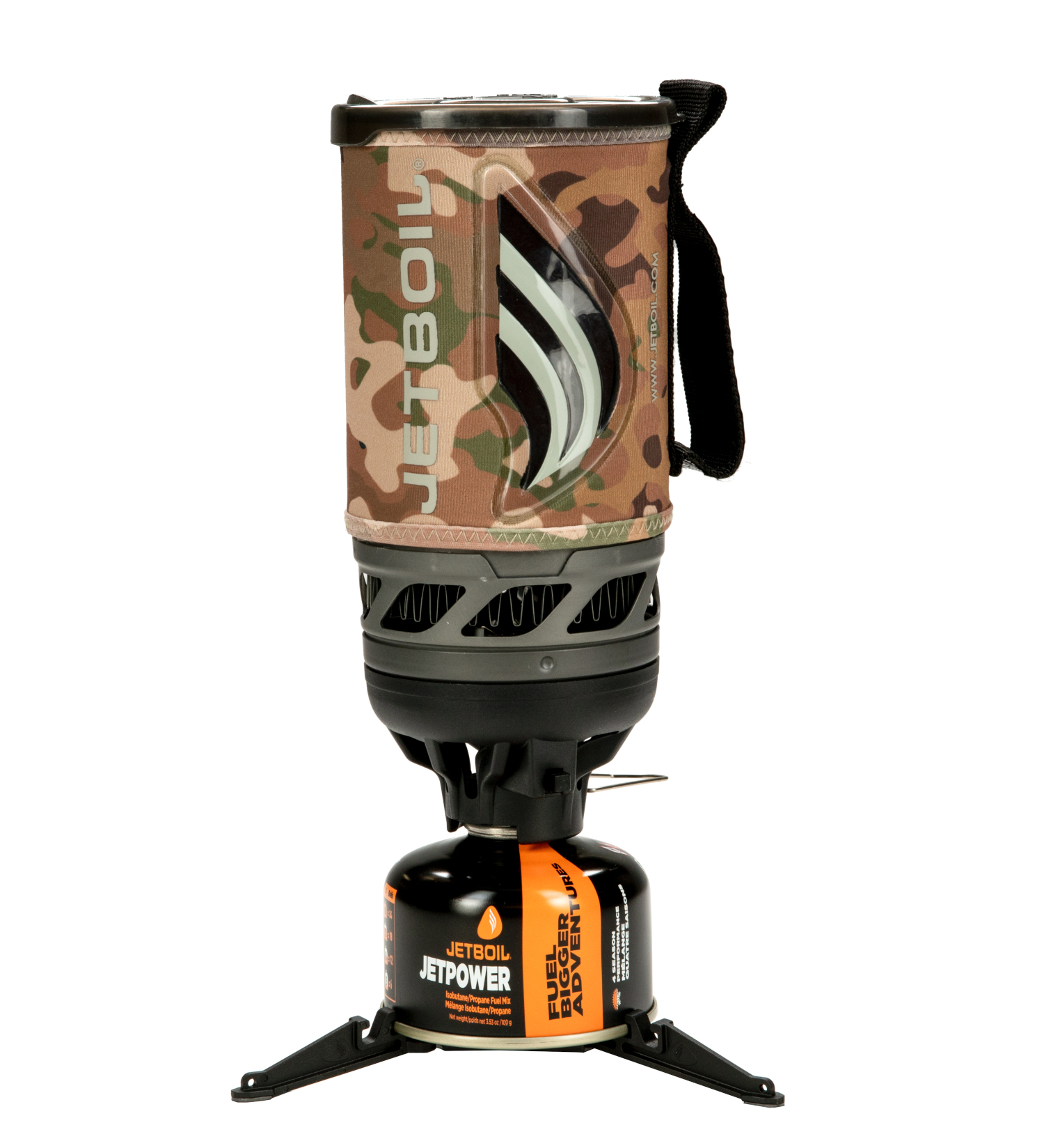 Jetboil Flash 2.0 PCS 1.0L propane stove, forest camo. Jetboil Flash 2.0 PCS (Personal Cooking System) portable stove. Suitable for family use, active outdoor use, and work applications such as boiling water and making coffee or heating soups. An all-in-one solution with all parts nesting together into a compact package, making it quick, safe, and easy to use for anyone.