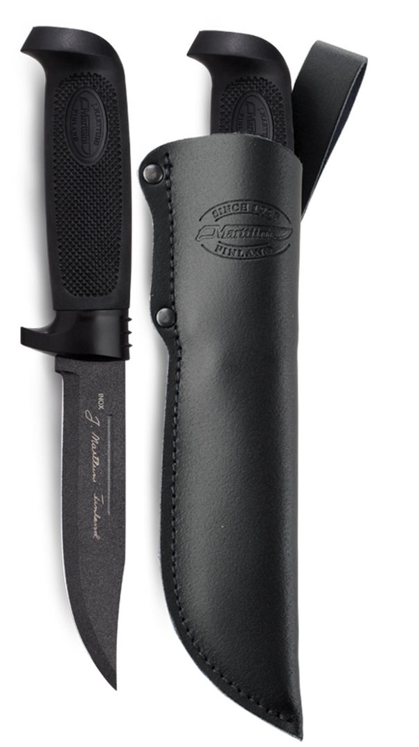 Materials: Blade stainless steel, Martef coating. Handle rubber. Sheath made of black leather.