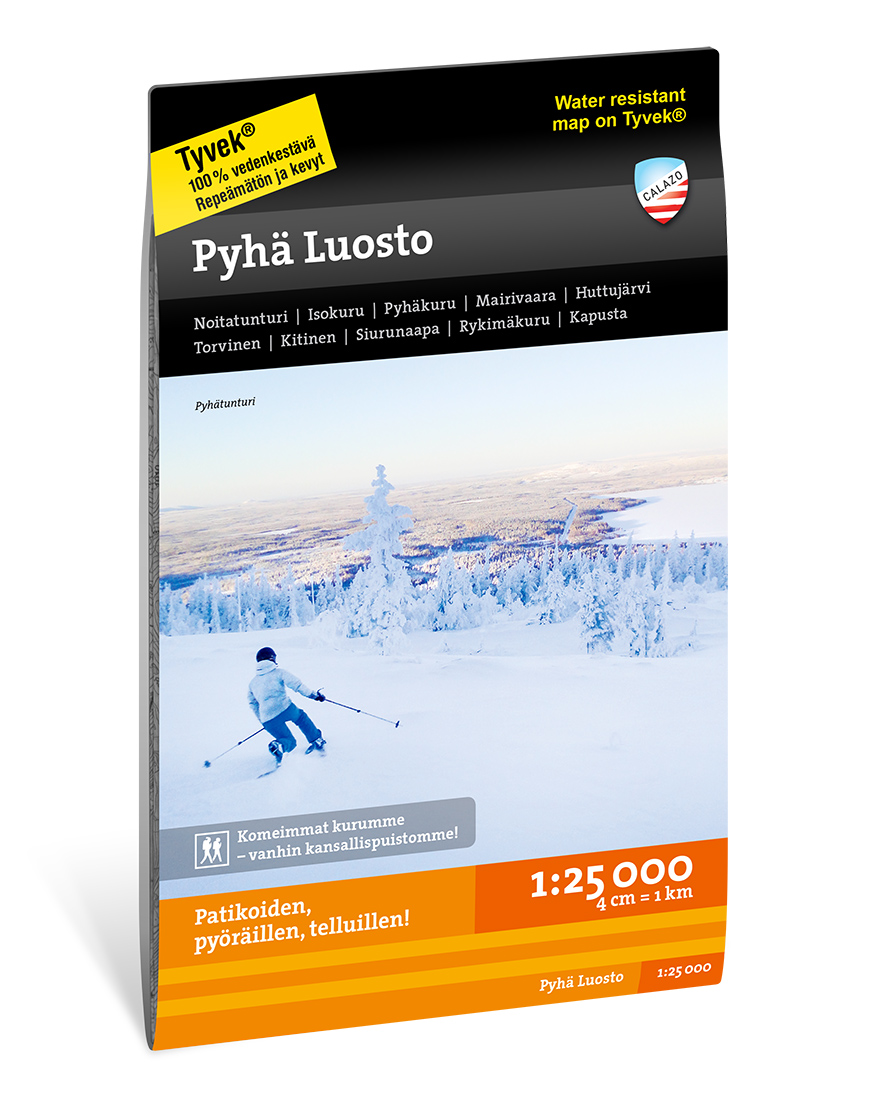 Map of Pyhä-Luosto Mountain Map, Calazo. Our first national park. Pyhä-Luosto is part of a mountain range that is over two billion years old, featuring steep quartzite peaks and stunning ravines.