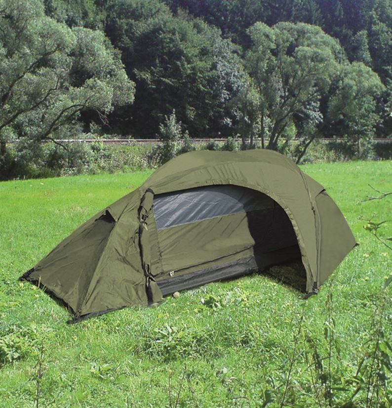 Mil-Tec Recom Single Tent, Olive Green. A lightweight one-person tent designed to withstand adverse conditions. The tent is double-layered with an inner and outer blanket. The outer layer is a polyurethane-coated polyester fabric with 1000 mm water column resistance. The inner tent has the same properties. The floor is 2000 mm water column resistant. The entrance has a mosquito net. Next to the entrance, there’s space for equipment, known as an awning. A great value for money tent. Ventilation openings on both sides.