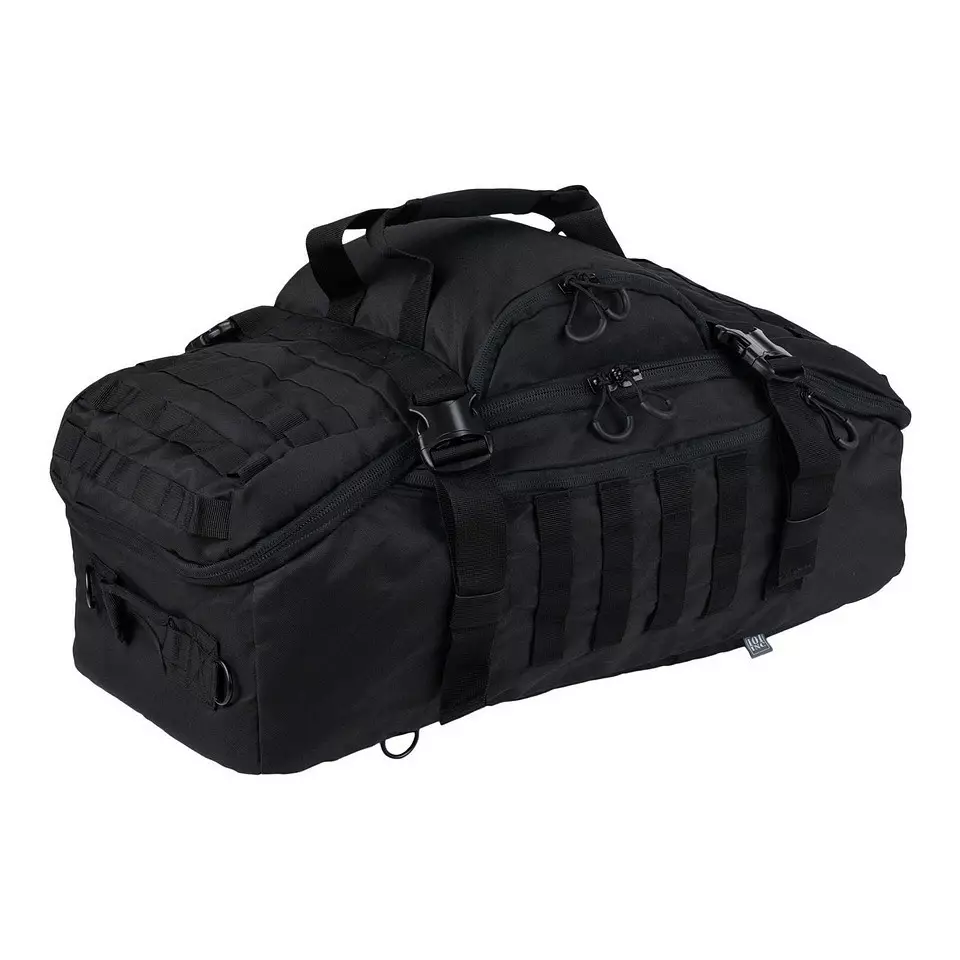 Tactical Weekender Bag 80L, Black. The 101INC Tactical Weekender Bag is a lightweight tactical duffle that serves multiple purposes: use it as a carry-on bag, shoulder bag, backpack, or sports duffle for travel and outdoor activities. What makes this bag stand out is its versatility as a 3-in-1 carry option - it can be used as a shoulder bag, backpack, or duffle. It features removable shoulder straps/backpack straps, conveniently stored in a zippered compartment at the back, allowing easy transformation into a backpack when needed.