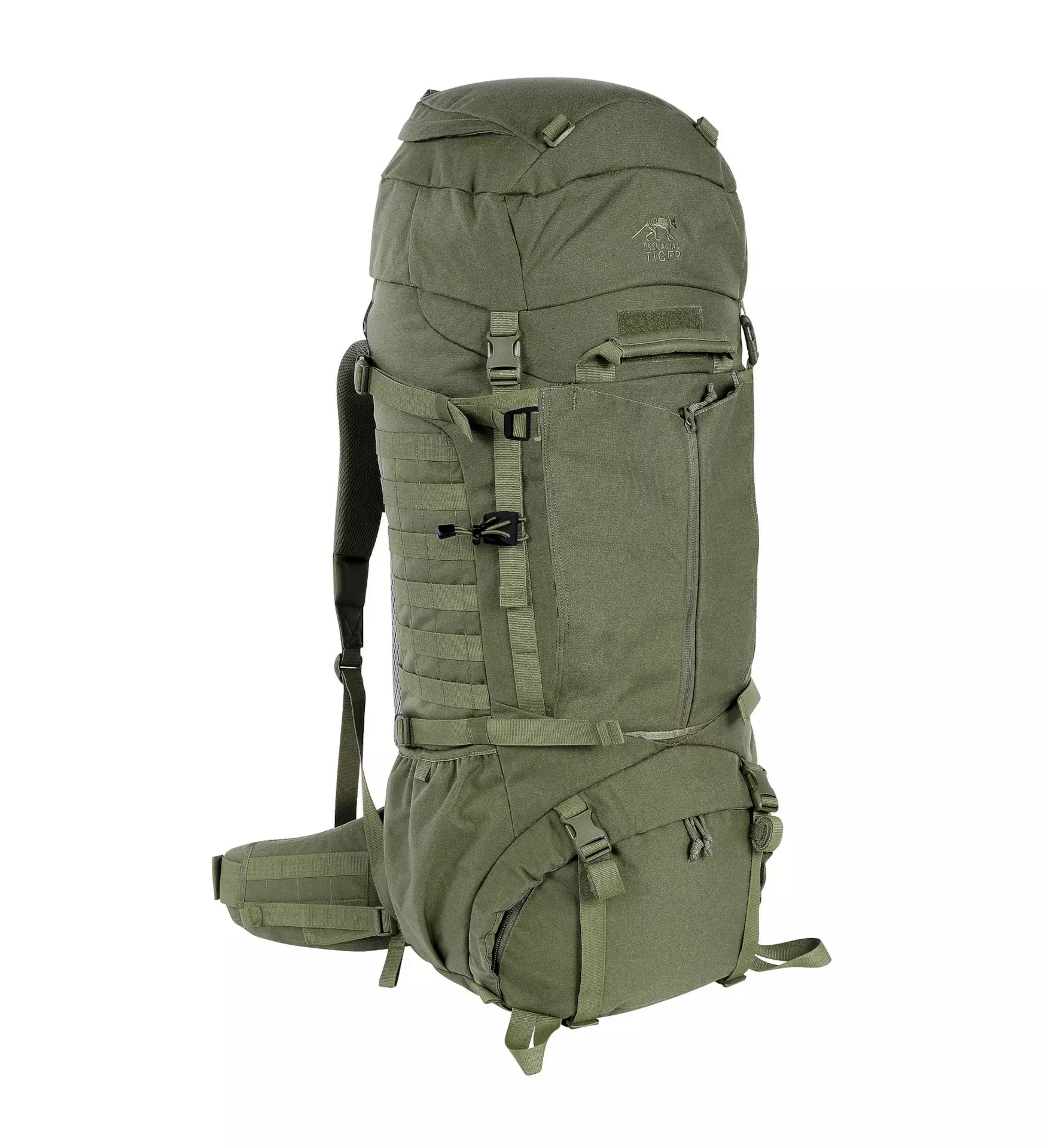 Tasmanian Tiger Pathfinder MKII is an 80-liter backpack designed for longer trips. The backpack features a front pocket with a stretchable fabric panel, perfect for securing a helmet or other gear.