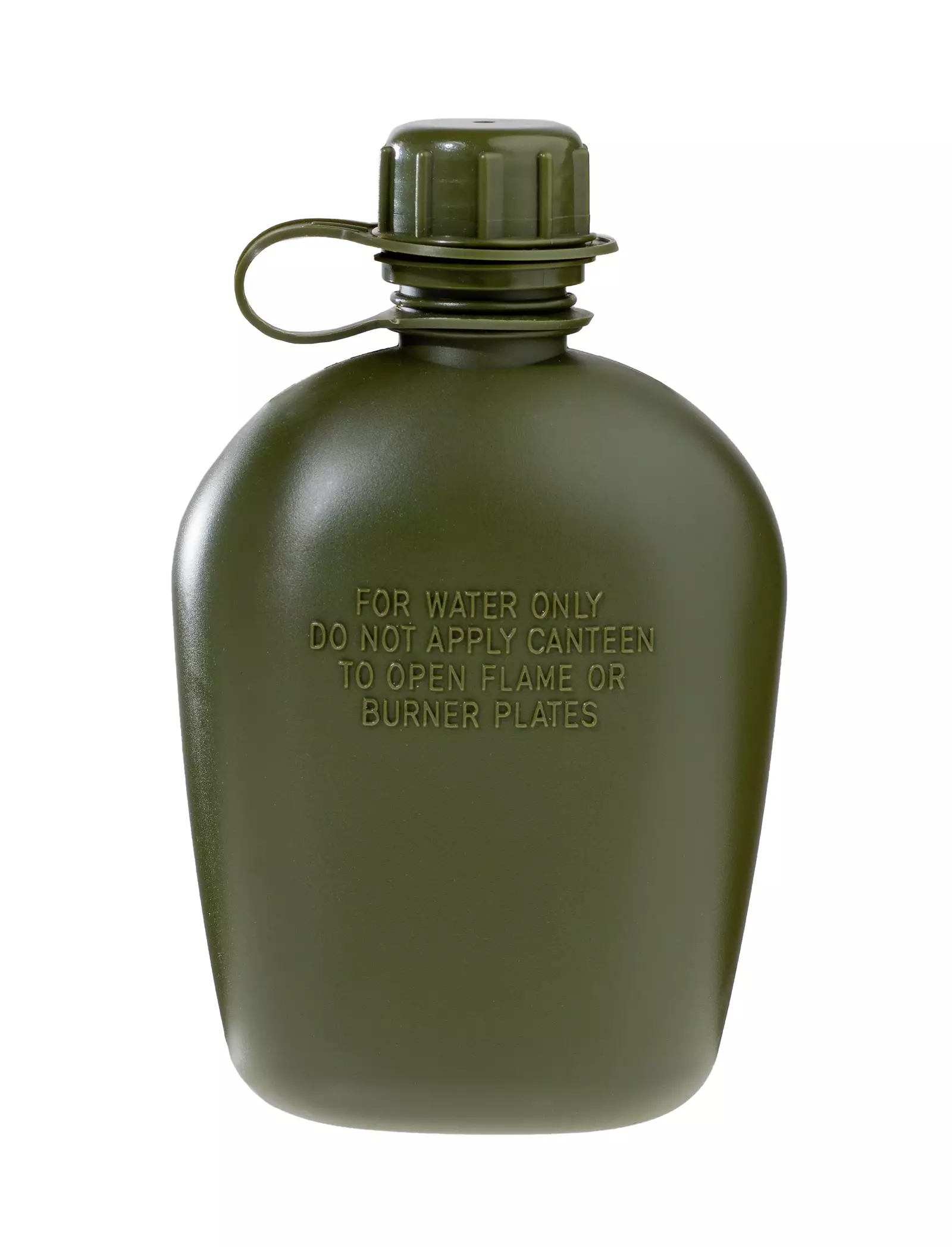 One-liter tactical field bottle made from food-grade BPA-free plastic. The cap features rugged threading, ensuring a secure fit. It is attached to the bottle, so you won't lose it in the field. This design is inspired by the US Army bottle and fits perfectly with the aluminum US Army mess kit.