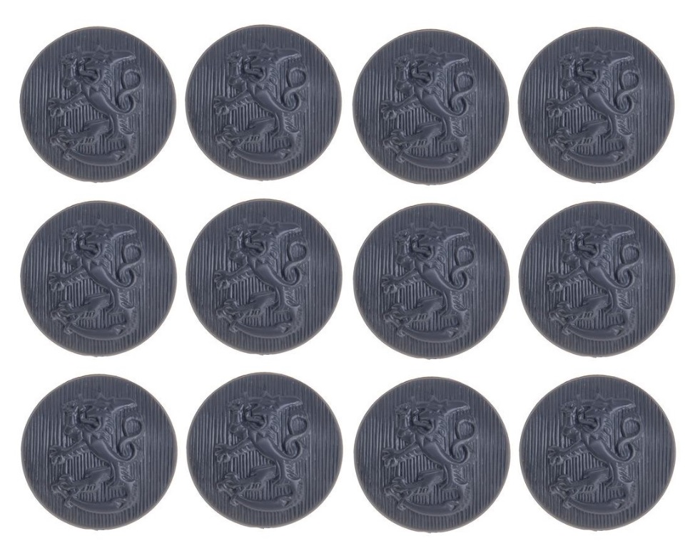 Surplus gray plastic buttons from the Defense Forces with the familiar SA Finnish Lion pattern. Diameter 22 mm. Buttons are unused!