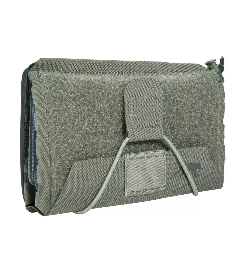 Tasmanian Tiger Wrist Office MKII IRR The updated Tassu Wrist Office is a compact wrist-mounted office. Behind the Velcro flap lies space for writing instruments, a map, or a notepad, protecting your gear from moisture with its plastic pockets. The flap features elastic loops for securing a few pens. The Wrist Office fastens to the wrist with an elastic cord that can be quickly detached using the pistol grip attached to the cord. The adjustable cord keeps the pouch securely in place.