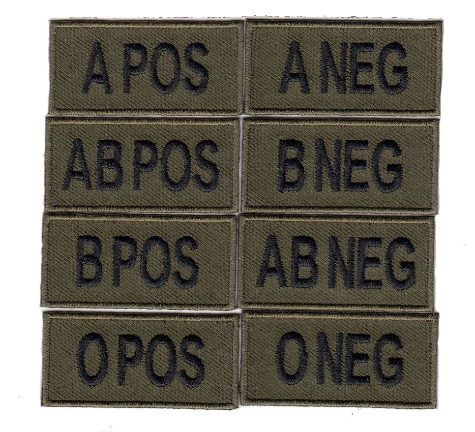 U.S.E. Blood Type Patch, Field Color. Embroidered blood type patch with velcro backing in field color. Identify your blood type and acquire the right patch for your jacket, backpack, rucksack, or vest.