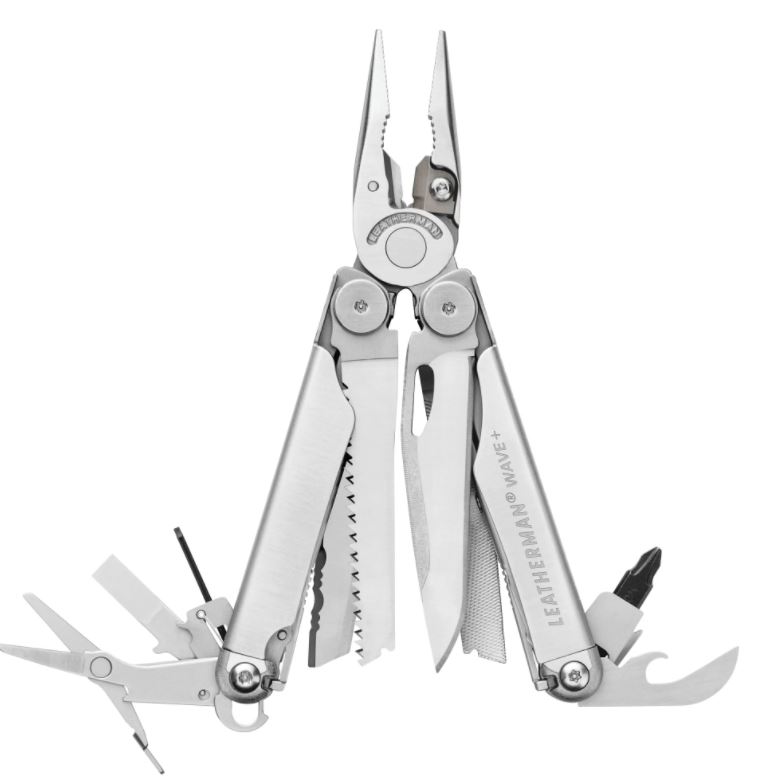 Leatherman Wave+ Multi-Tool. A favorite among outdoor enthusiasts, the revamped Plus model features replaceable wire cutters.