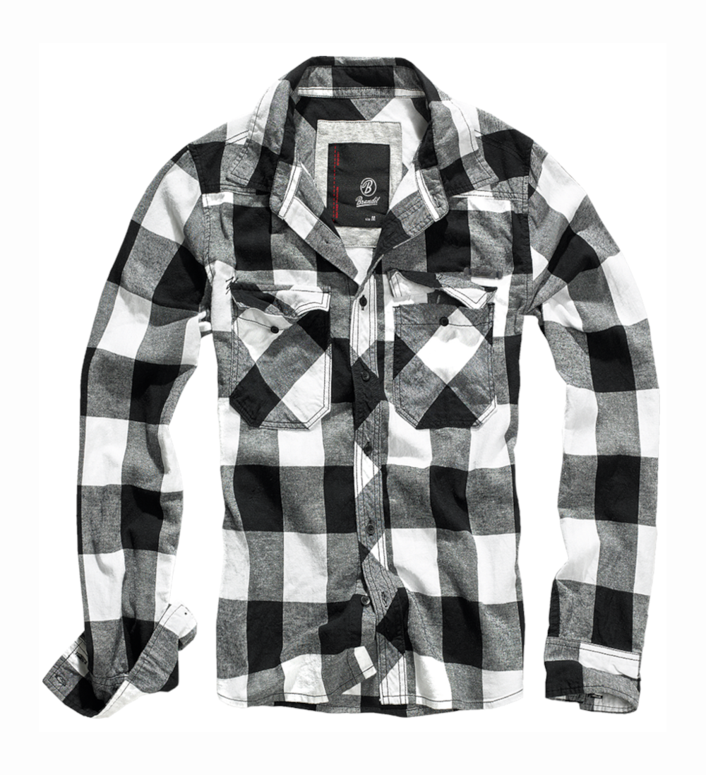 Axe Chopper Flannel Shirt, White/Black. The Brandit lightweight flannel shirt features practical chest pockets. Crafted from soft 100% cotton, this high-quality shirt offers a straight cut and a rounded hem, along with two buttoned chest pockets. It is perfect for urban wear as well as various outdoor activities and hiking. Ideal for pairing with shorts in the summer or denim jeans during cooler times.
