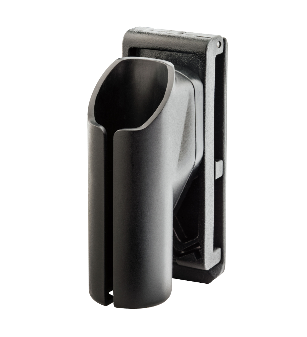 ASP TLC Holster is designed for the ASP Tungsten flashlight. It rotates and locks in 12 different positions. The light is inserted lens down, which facilitates quick access and protects the lens. The bottom of the holster is open, allowing free use of the flashlight while keeping your hands free. The rotating holster allows for the adjustment of the light angle as needed.