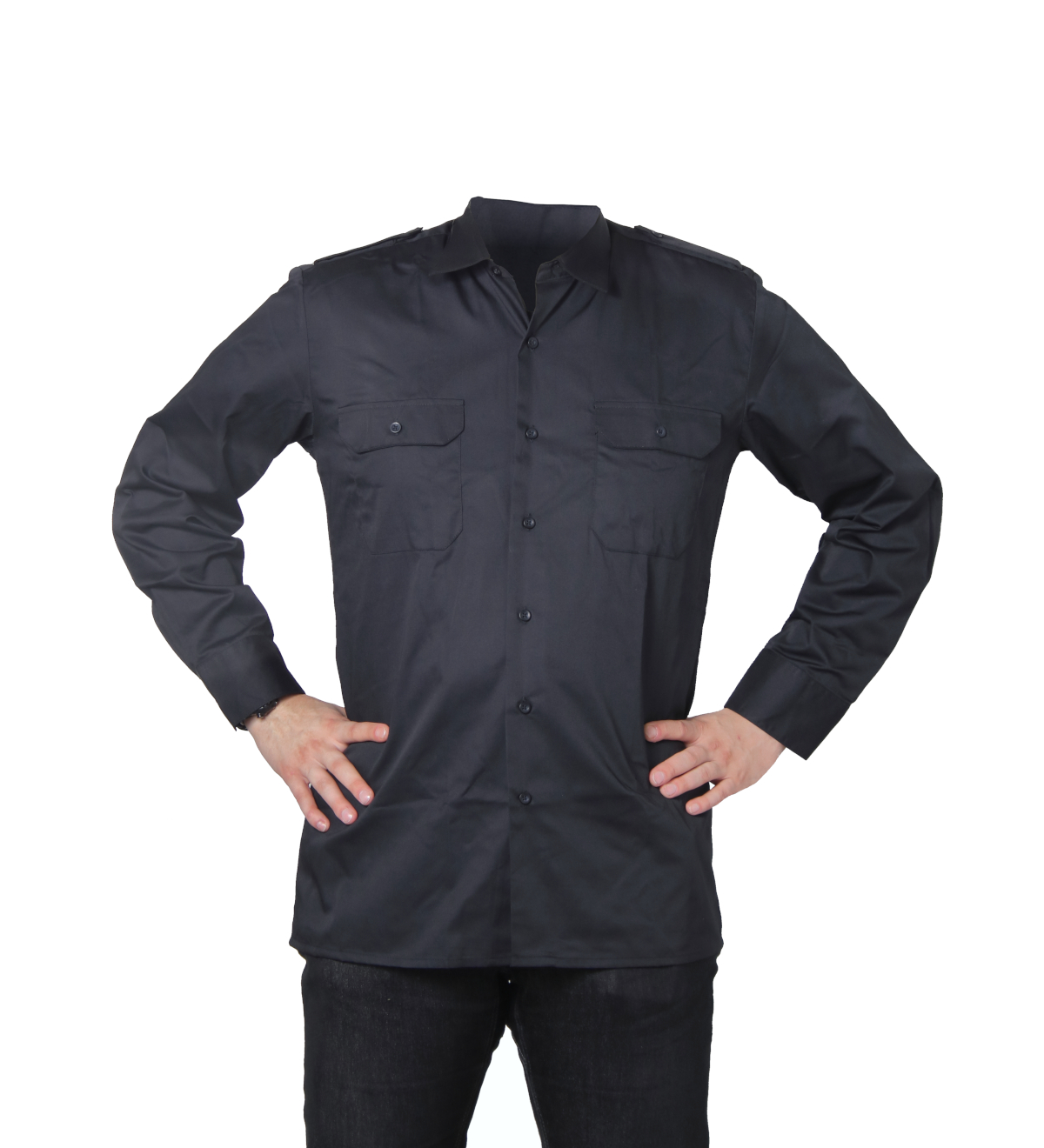 Long-Sleeve Service Shirt, Black, Mil-Tec. This long-sleeve button-down shirt from Mil-Tec features shoulder epaulettes. Perfectly tailored for security personnel, formal events, or everyday wear. Equipped with two chest pockets and epaulette spaces on the shoulders. Fastens with buttons down the front.